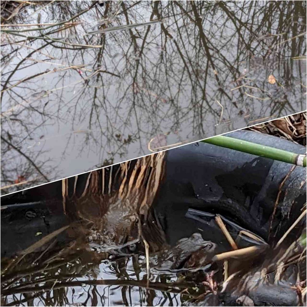 池に近付くと沢山のゲコゲコがピタッと止まります 本池の隣りの小池の方から廻ると隠れ切れなかった2匹の姿がありました🐸🐸