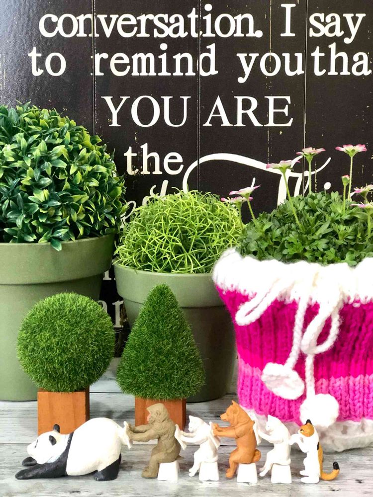 鉢カバーは、編み編み上手な花友さんに編んでもらいました。