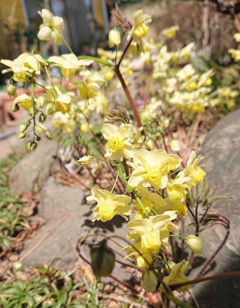 こちらのイカリソウさんも丸っこくて薄い黄色💛が可愛いですね🌼*・