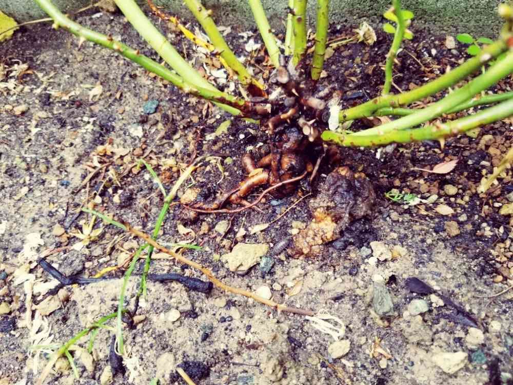 うちの庭の夢乙女✨ 他の植物たちで隠れていた根本をスッキリさせてみたら、ビックリ‼️😱 このコブみたいなのって、もしかして癌腫ですか⁉😭どなたか分かる方、教えてください😭