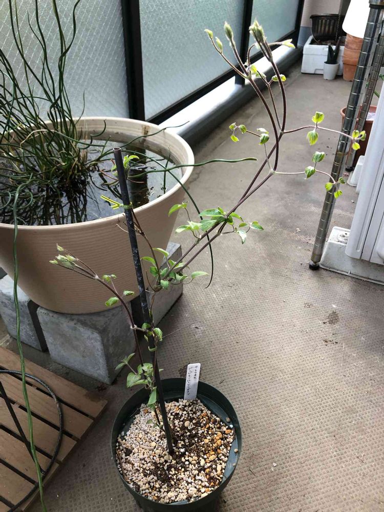 今年はクレマチスにも挑戦!バーバラ・ハリングトンの苗を購入しました。つるがどんどん伸びるので、早く誘引する必要がありそうです💦