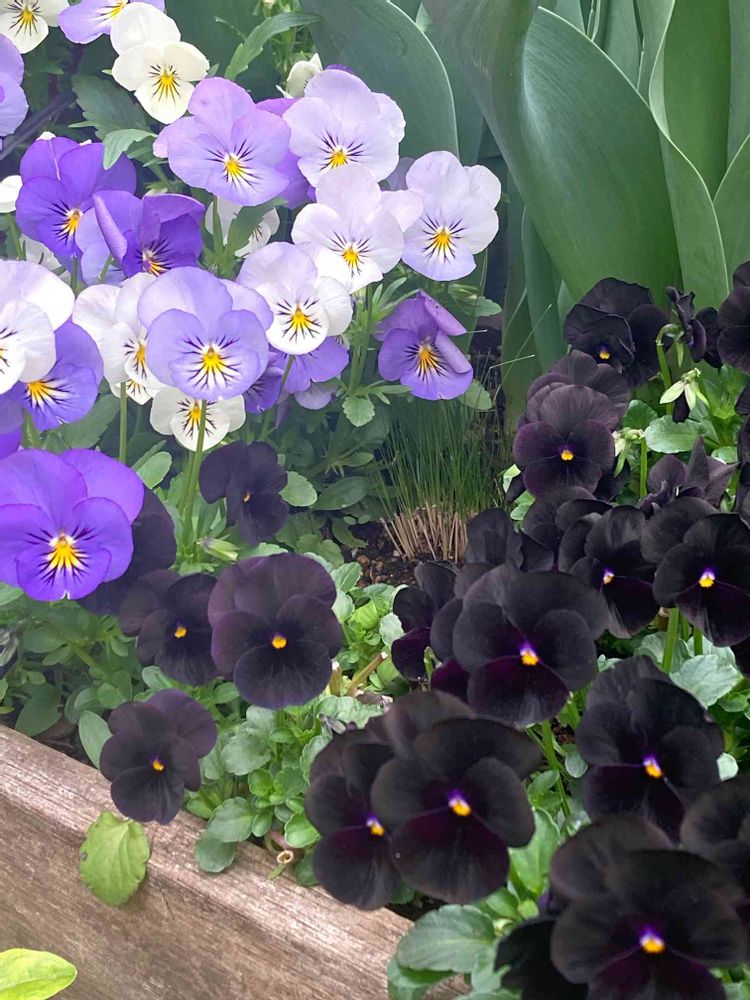 ここまで黒い🖤パンジーに😵です。お隣の優しい花色🌼💜と一緒で、お似合いですね。🖤🌼💜🖤🌼💜