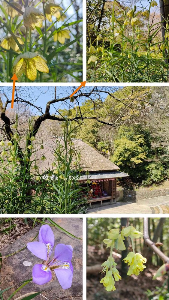 日本の原風景見るようです。アミガサユリも寒咲きアヤメも初めてでした。珍しいですね💜💛