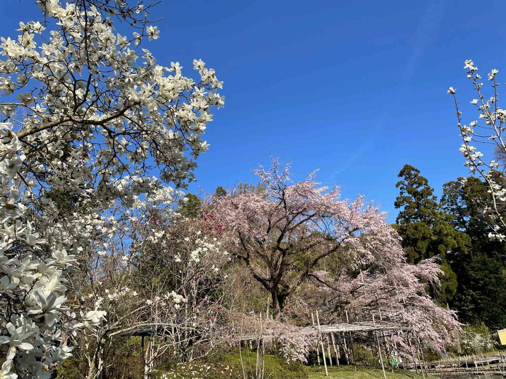 25℃と夏のような暖かさで シダレザクラ🌸も見事に花が咲き誇って 風格がありました😃