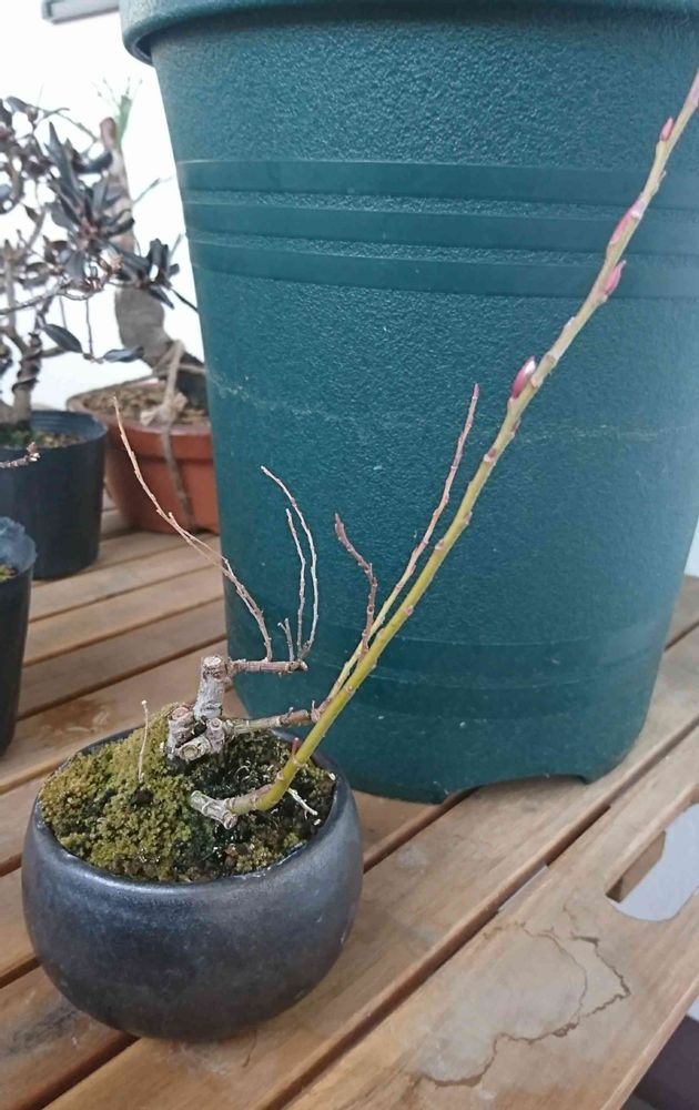忌み枝のひこばえが生き残りました。セオリーでは、剪定する枝ですが、保険をかけて残しておいて良かった😀