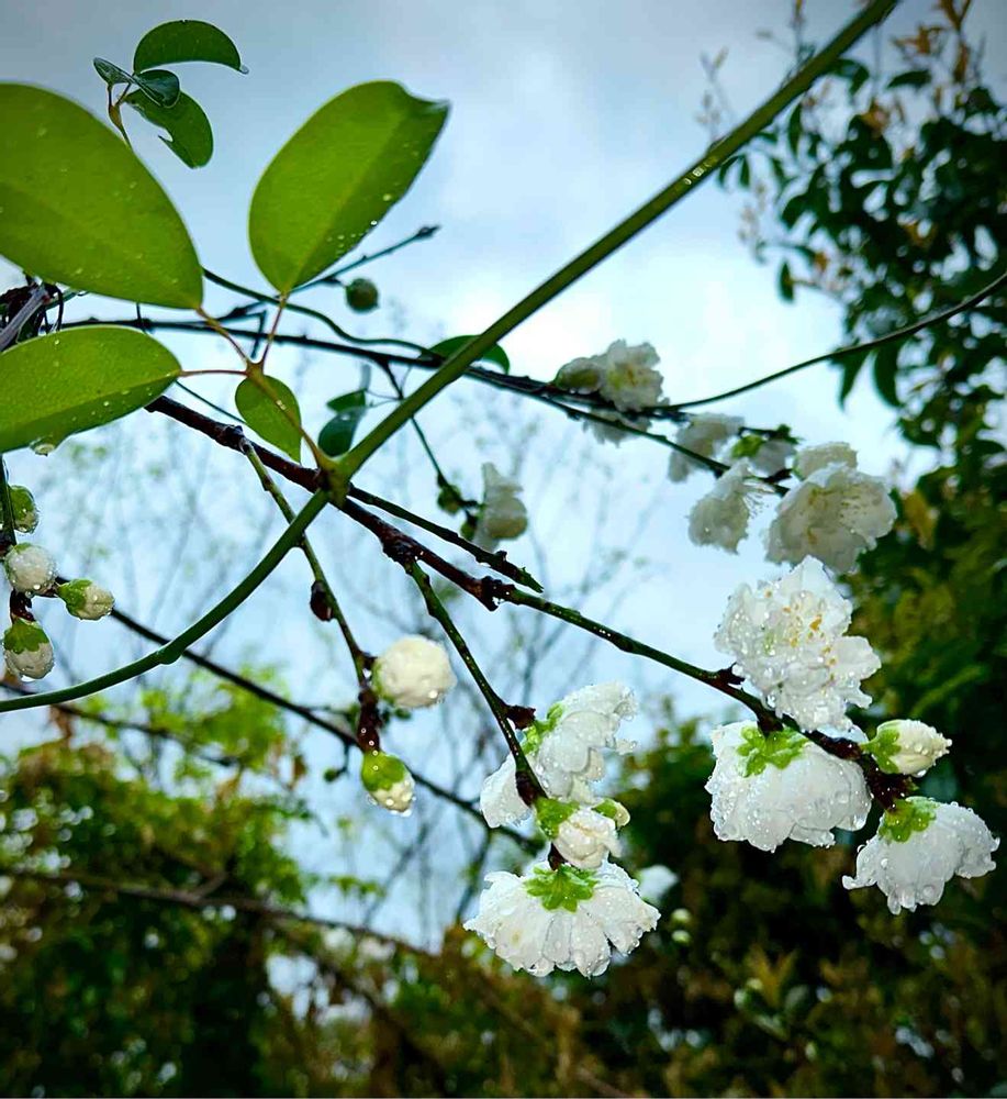 📝小雨の降る中でしたが、なんとも美しく💦雨粒が白い花桃の花を綺麗に見せてくれていました。