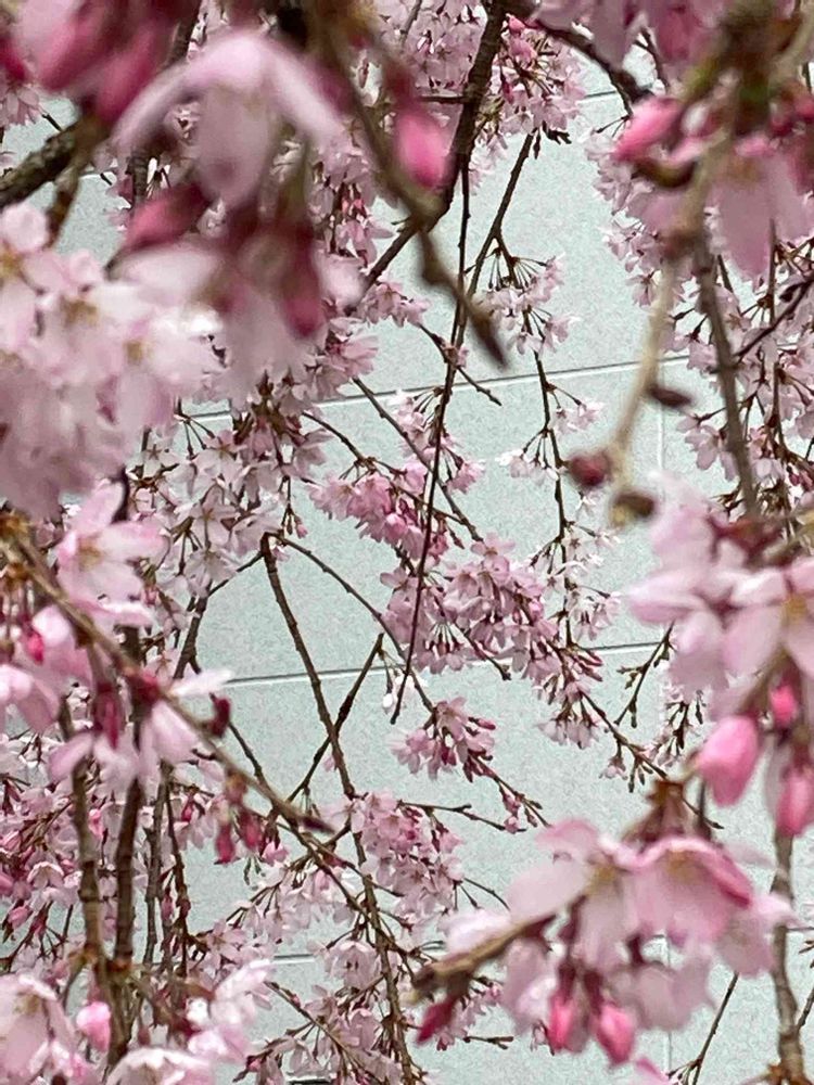 小雨に見る👀ベニシダレ桜、、似合いますね〜、、。🌸