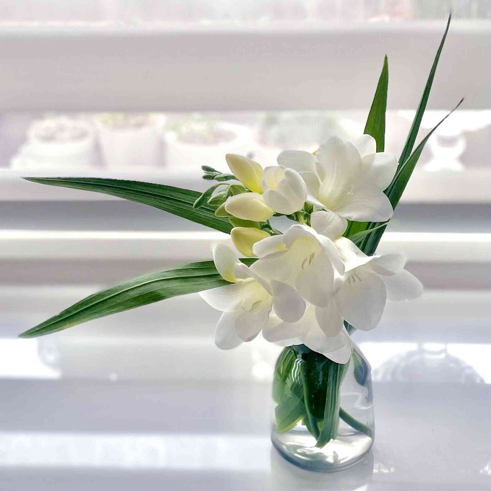 窓辺,フリージア,フラワーアレンジメントの投稿画像