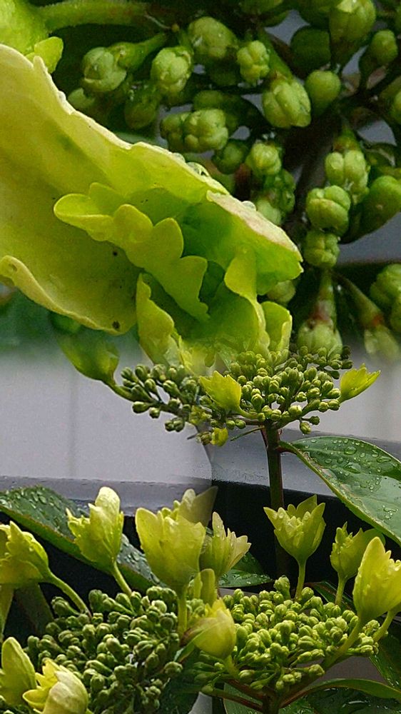 ヤマアジサイとかの交配種らしく 常緑樹で 一年中 葉🌿も青々