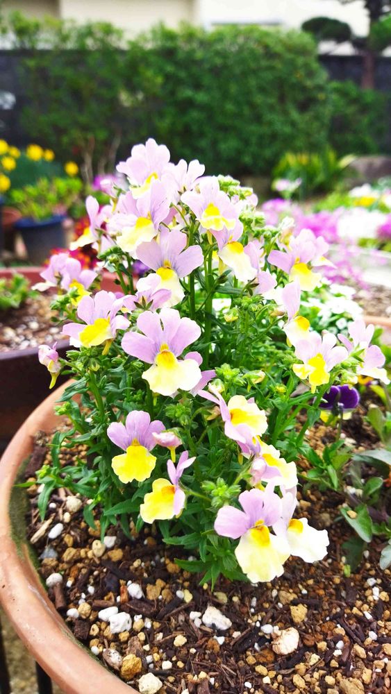 広い庭,鉢植え,ネメシアアロマンス ハニーピーチの投稿画像