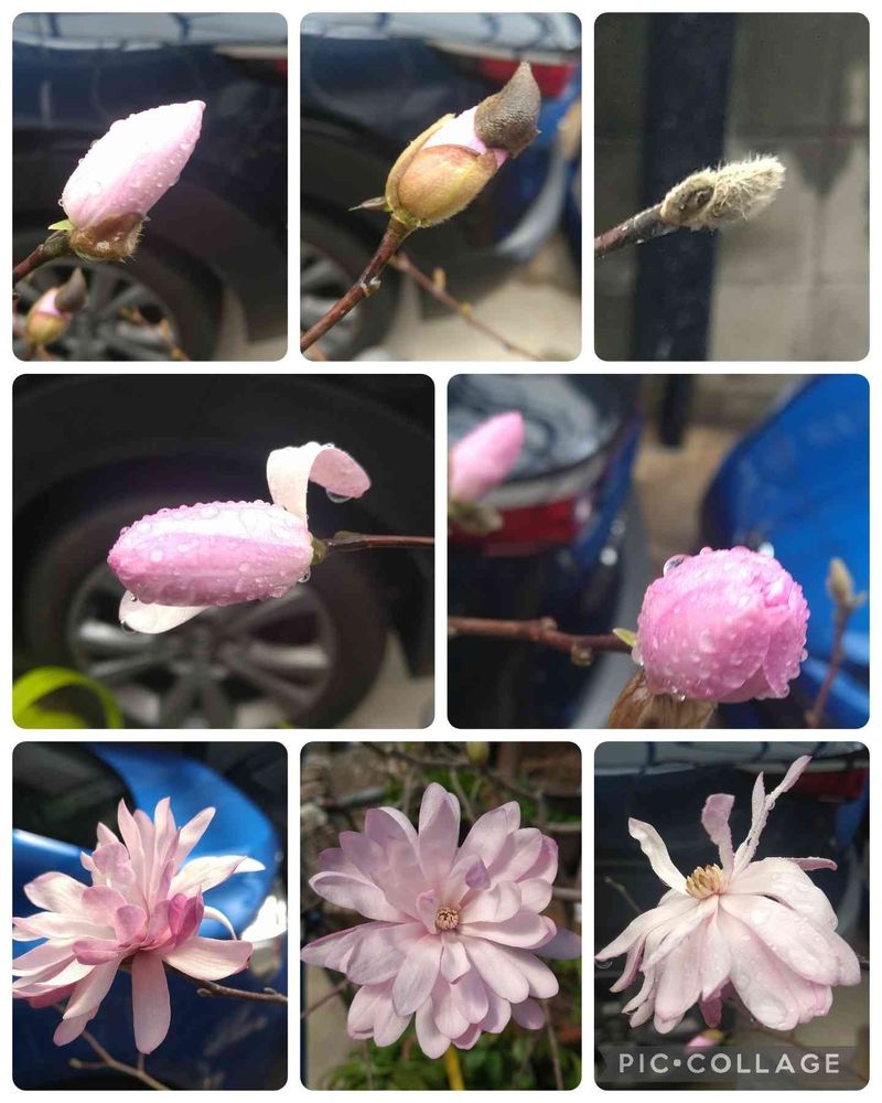 ヒメコブシ、1つずつ咲いてはしぼむから、こんな風に、蕾から咲くまでの写真が撮れます。
