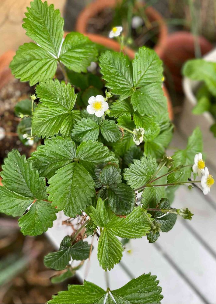 ワイルドストロベリー鉢植え。ワイルドストロベリーがこれほど大きく育つと思いませんでした。
