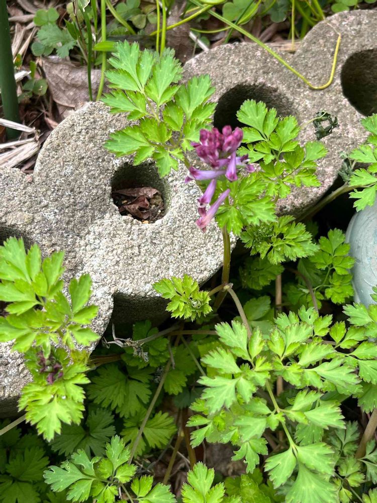 ブロックの間からムラサキケンマの花が咲いていました。😊💕💖