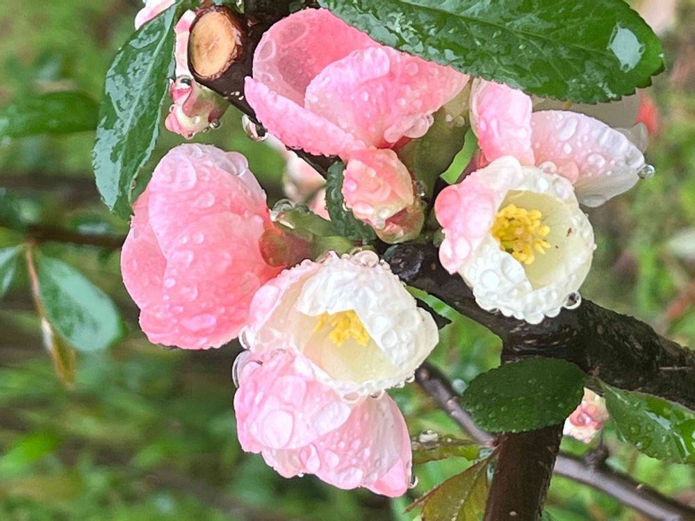 さん💖🤍🌿✨おはようございます😊GS始めていろんなお花があるって知りました♪木瓜💖可愛いですね😍サクラも咲いてきましたし雨でも行きたくなる場所になりました😆💕💕💕