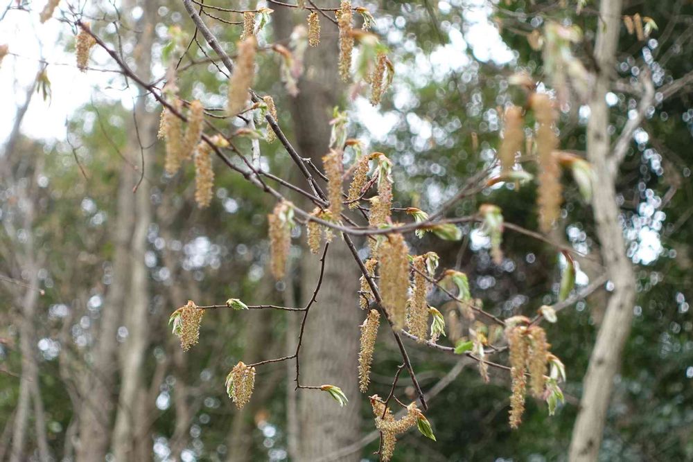 雌花序は、枝の先端の芽から出て垂れ下がる。