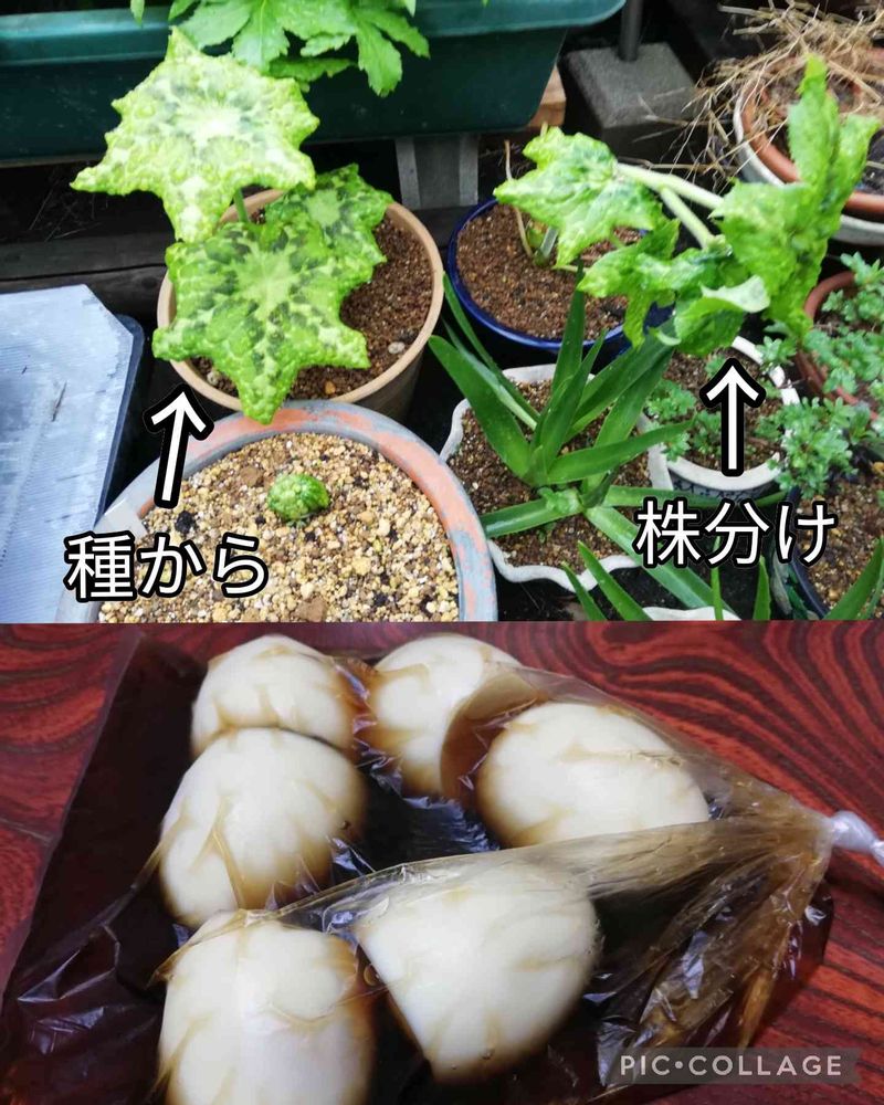こんばんは 今日は3枚目の投稿 夕方 雨に打たれて 株分けした八角蓮 大きくなってきたけど 項垂れていました😨