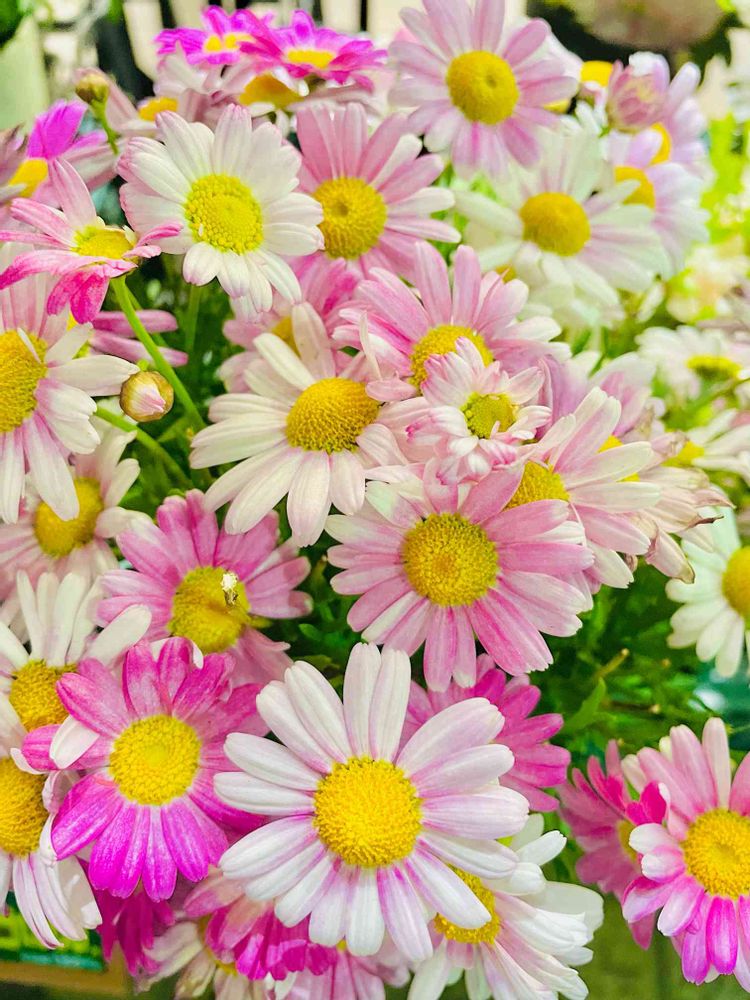 お花屋さんにピンク系の華やかなマーガレットがあったのでパチリ✨可愛い💕