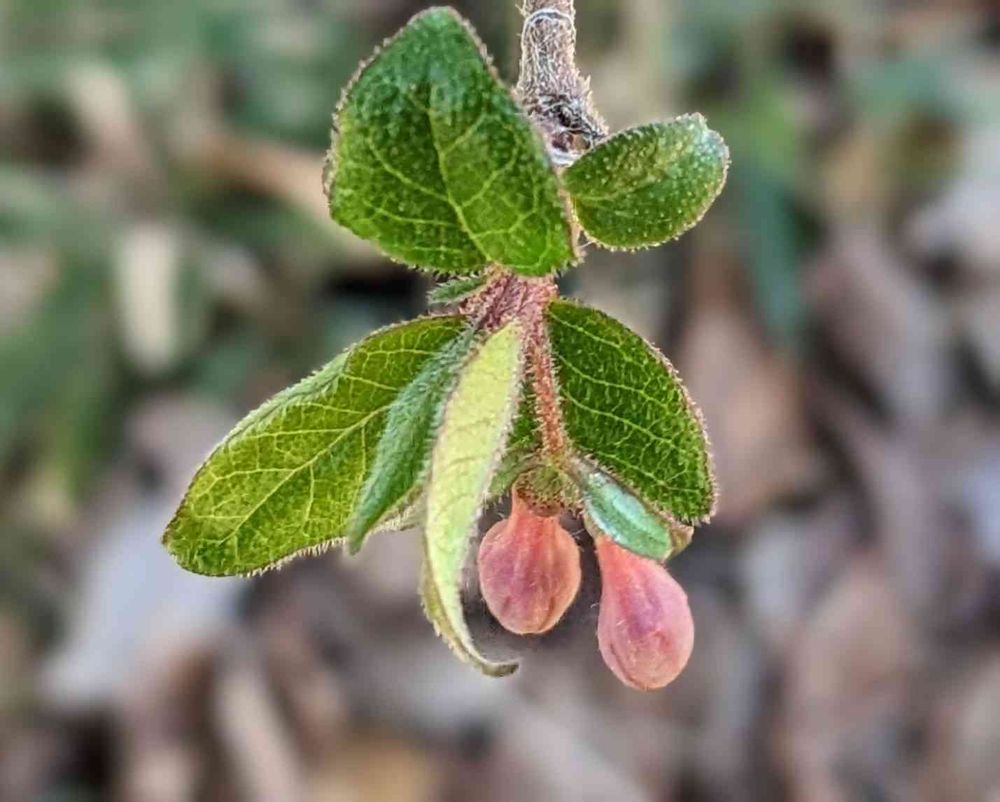 先日庭の斜面のミヤマウグイスカグラ(多分)…に可愛い蕾が出来ていました