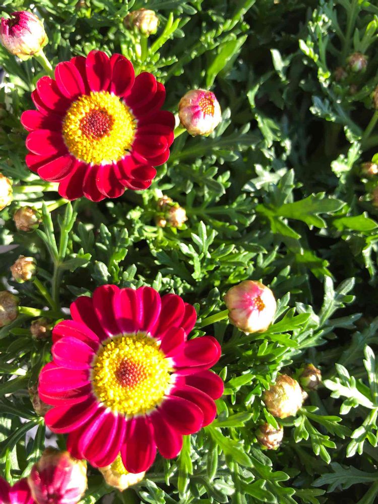 花びらも丸みを帯びていて 鮮やかな紅色のマーガレット 素敵ですね❣️