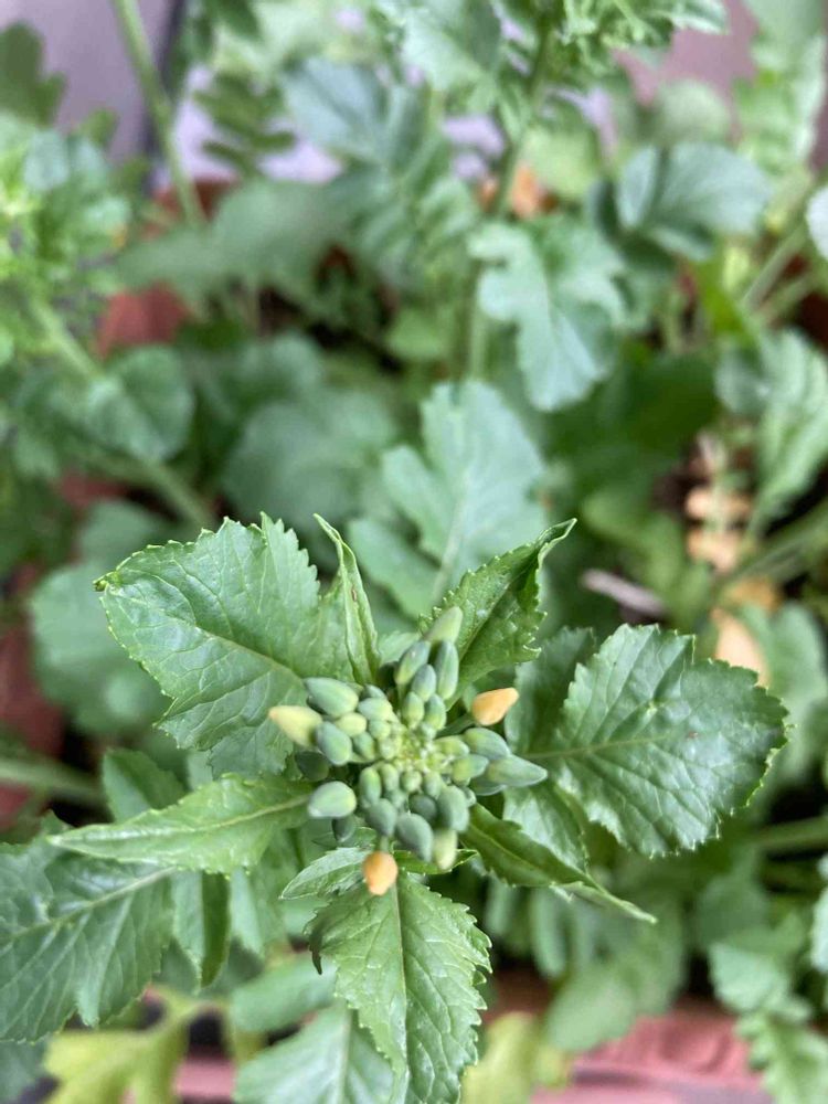 バルコニーのは 余った種を葉っぱの漬物用で育てた物で間引きながらつけてました。お花も楽しみですね🌼
