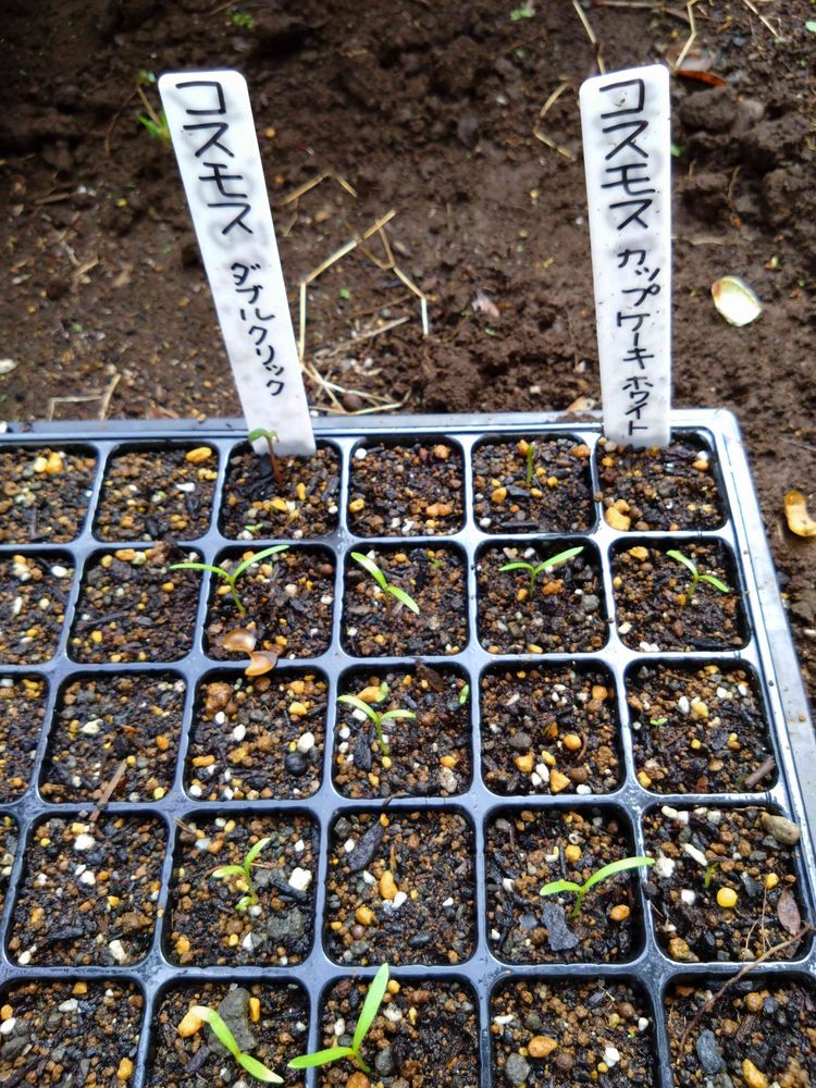 早咲きのコスモスの種まきをして発芽してきましたよ(^O^)