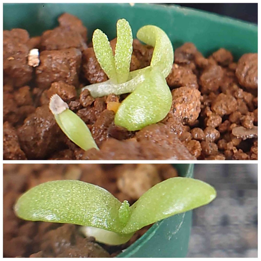 下の子も倒れてるけど、ちゃんと双葉の間から本葉が出てきました🙌 って普通の事ですね🤣
