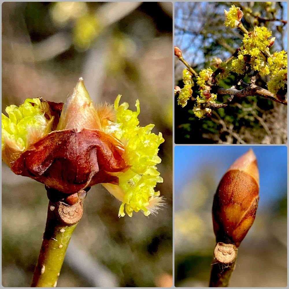 冬芽から、芽鱗を脱ぎ捨ててキレイな花が咲き始めました!葉痕がしっかり残っていますから、まるでカーニバルが始まりそうな勢いです❗️