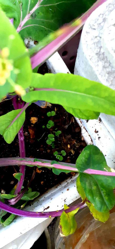 紅菜苔の脇にもホーリーバジルが生えている・・・・。因みに植えた覚えは全くない・・・。(種回収してなかったんです) ミントテロならぬ、バジルテロにあっている。・・・。恐るべし、ホーリーバジルめぇ・・・。どうせならレッドホーリーバジル(タイバジル)の方が良かったんだがな・・・・。