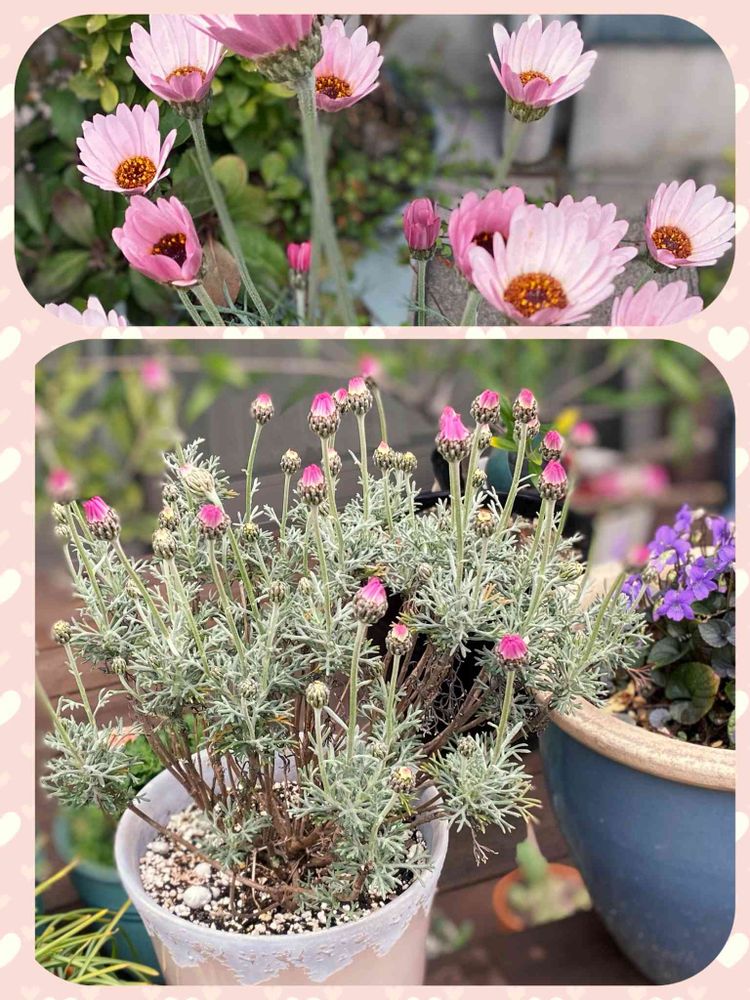 ⬆️は、1月に苗でお迎えしたローダンセマム カップケーキ。現在、パンジーと一緒に開花中。