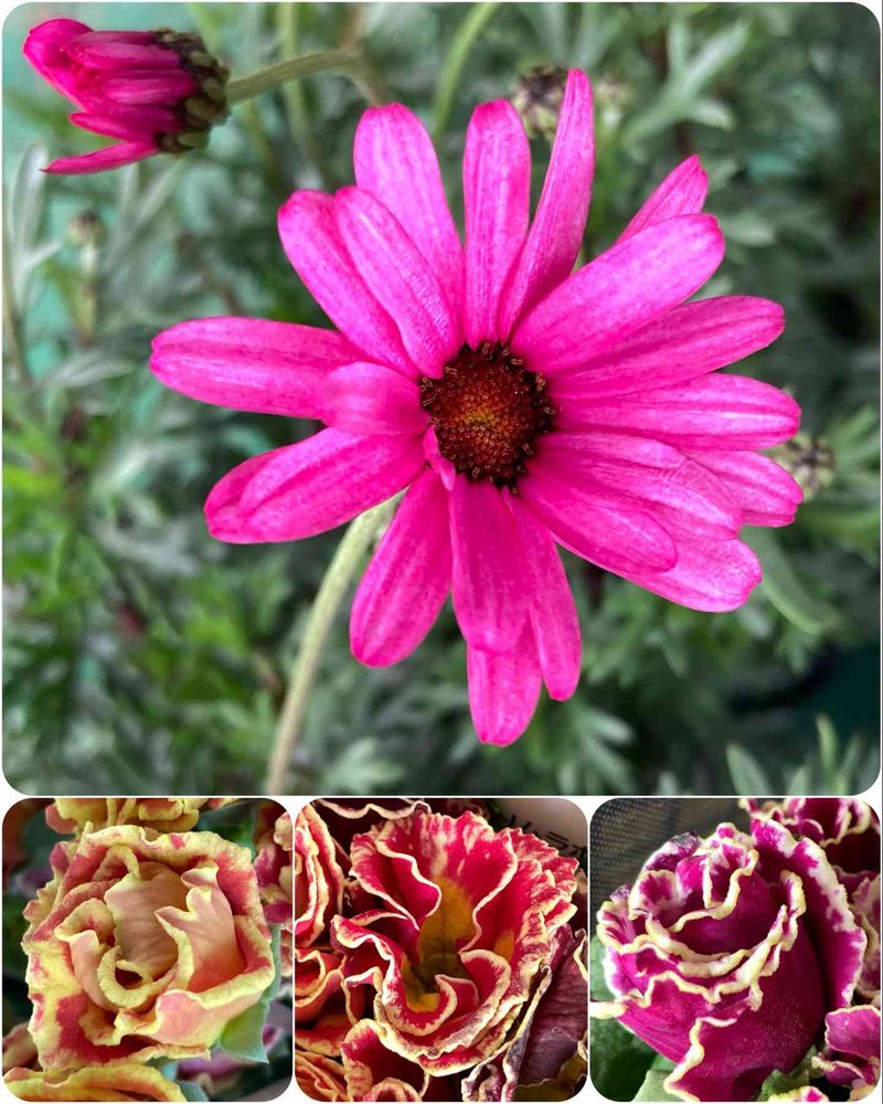 初めてお目にかかったビジューマム・ローズクオーツさんというお花🌸、フダを見ると、ローダンセマムさんとマーガレットさんの交配種と書いてあったので後日調べたら、なんと今年の最新品種らしい😳‼️