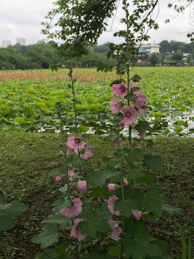 不忍池のほとりで小雨降る中、さりげなく咲いていました。💕