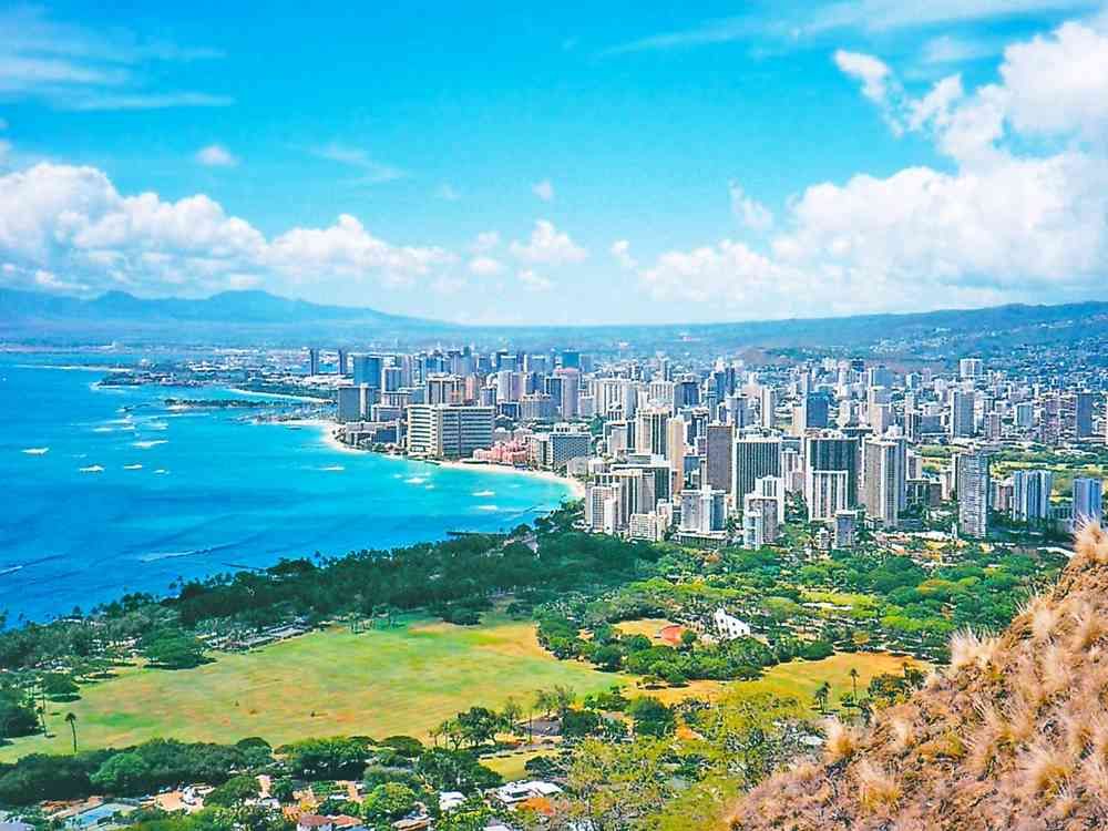ハワイ🇺🇸の中心、オアフ島のダイヤモンドヘッド山頂からホノルル市街の眺めです😊