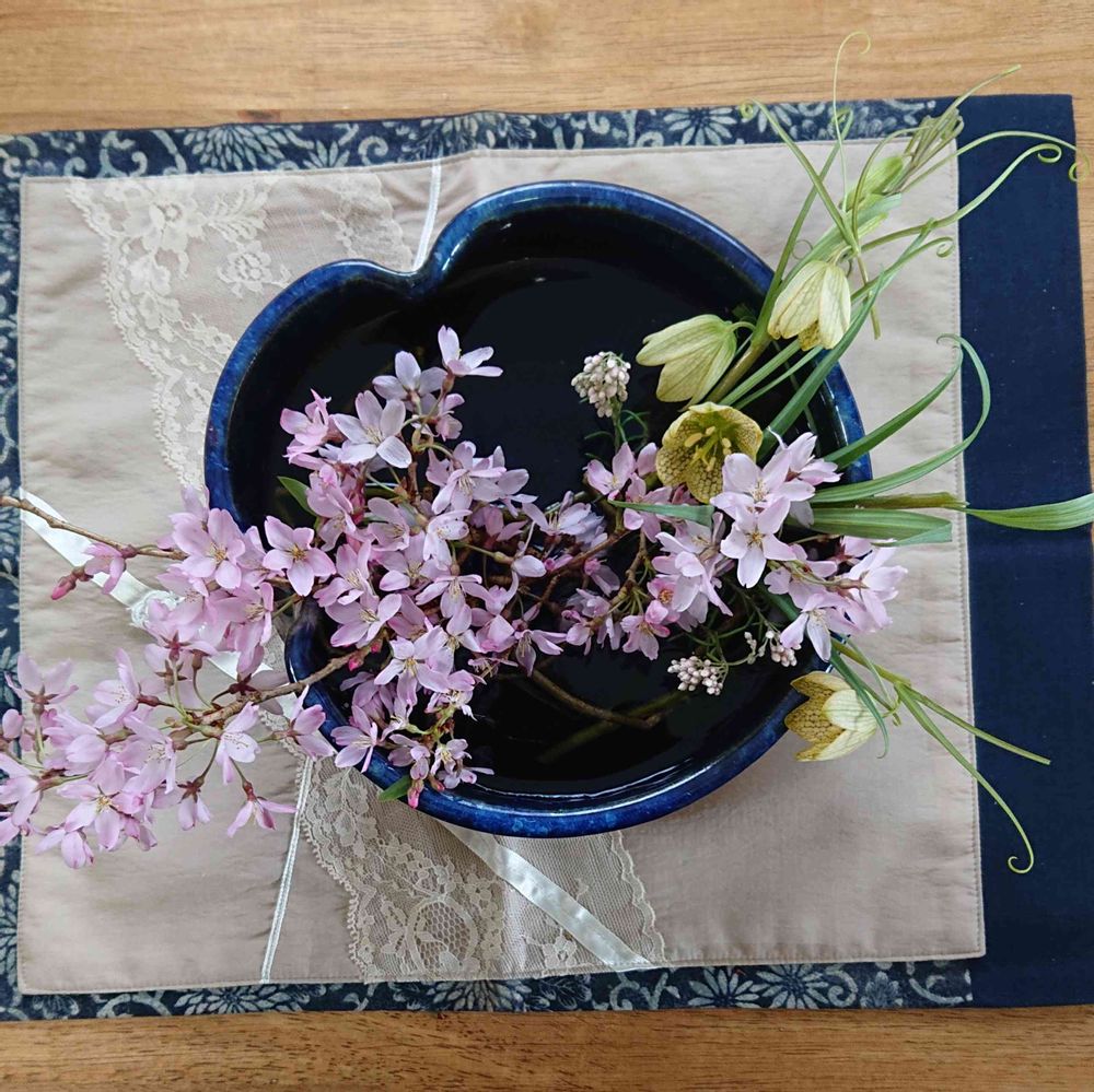 下の敷きものと、器の色が良く合って、お花の色を引き立てていますネ👏👏👏