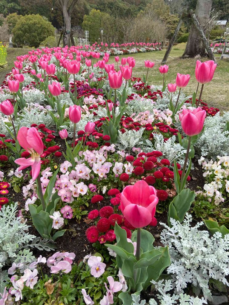チュ-リップに添えて植えてある花々も綺麗で、お見事でした😃