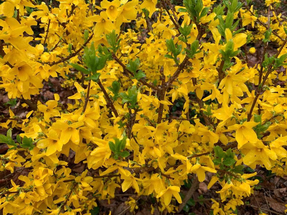 黄色いレンギョウが街を彩っていますね。