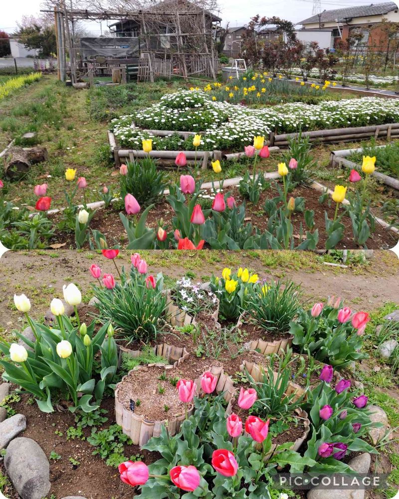 こんばんは🤗お多福ガ―デンの🌷.ありんこクラブの🌷が、満開になりました✌️午後4時頃の様子です!雨の後の草むしりです!これからは、草との戦いです😆休憩所の藤の花の蕾も昨年より、増えてきました✌️4月半ばが楽しみです🥰。