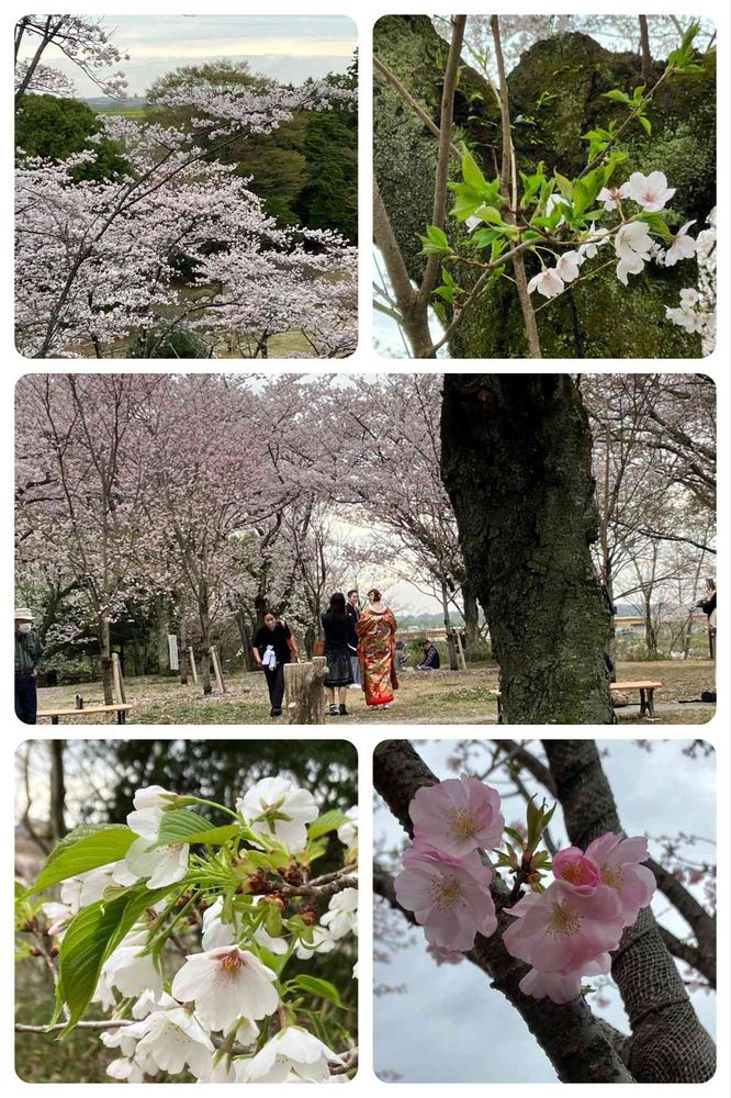 雲空に関わらず多くの人が桜を楽しんでいます 記念撮影の婚礼姿 振袖姿 桜を楽しむのを忘れました 少し大型なアーコレイド