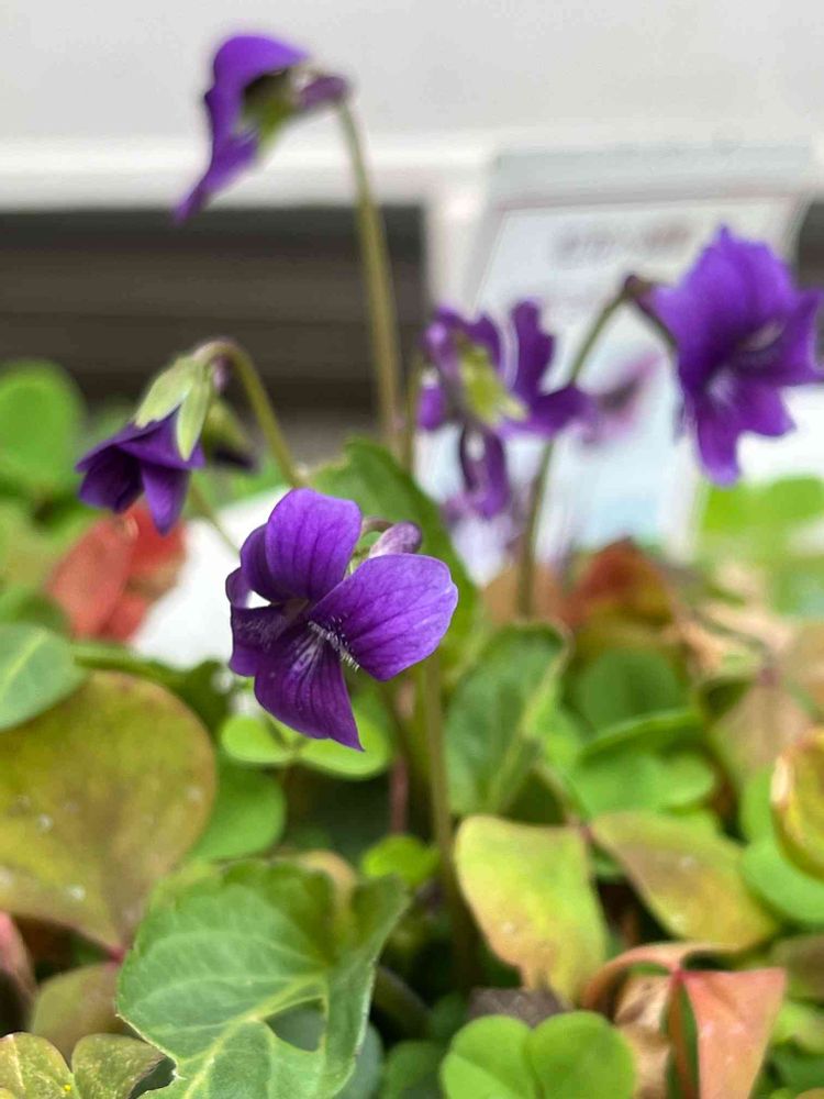 オキザリスの鉢の中にスミレが咲きました💜