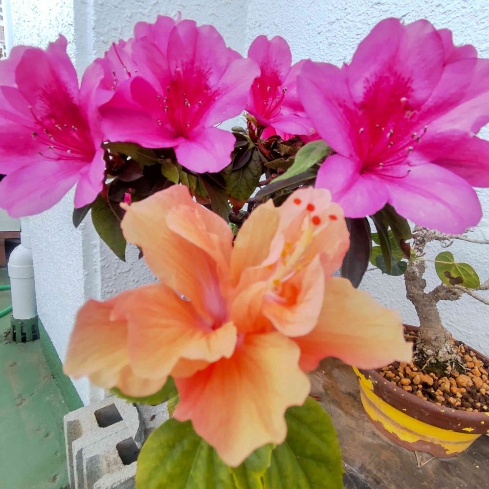 ya-chanさんのバルコニー/ベランダ,ツツジ,ハイビスカス八重咲きの投稿画像