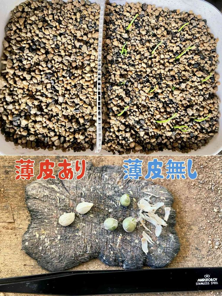 硬い殻をハサミで1ヶ所切り落として蒔いてみたのです。