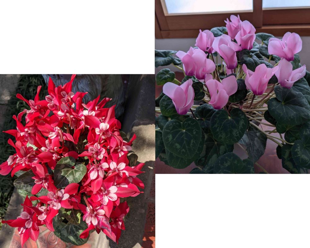 友達のシクラメンジックスと私の室内シクラメンがまだまだ咲いてます(♥ó㉨ò)