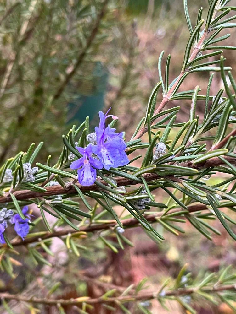 ローズマリーが咲き始めました💕なんだか重そうで、枝がたわんでいます😀