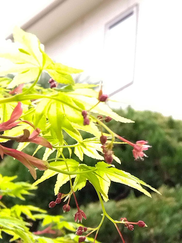 紅葉さんのお花 秋の彩りとは またちがって 春の黄緑の葉っぱに チョコンとお花が咲いてて