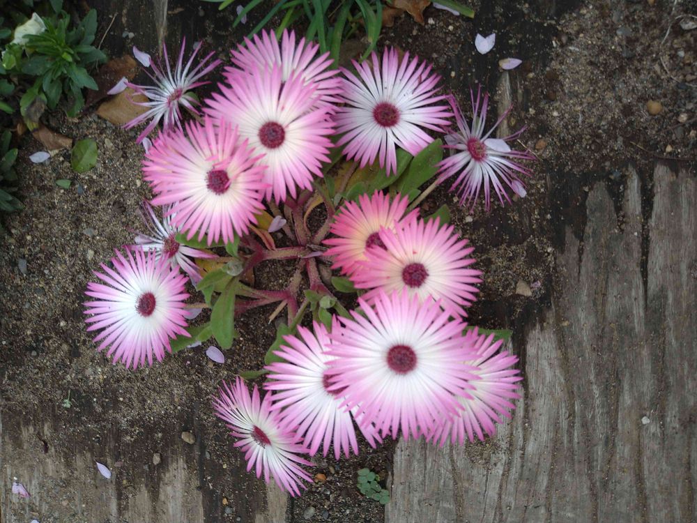 お庭の足元にピンクの可愛い花が咲いていました。リビングストーンデージーというそうです。
