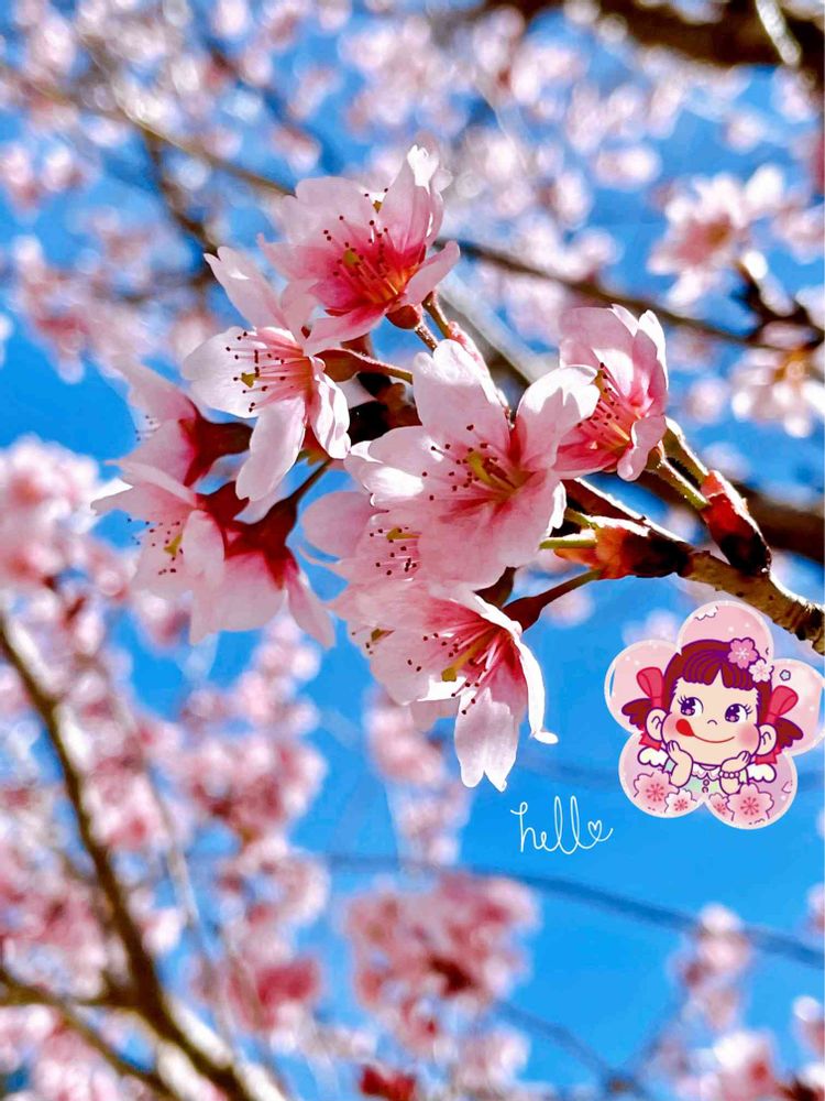 こっそり桜に紛れ込んだペコちゃんデス🌸