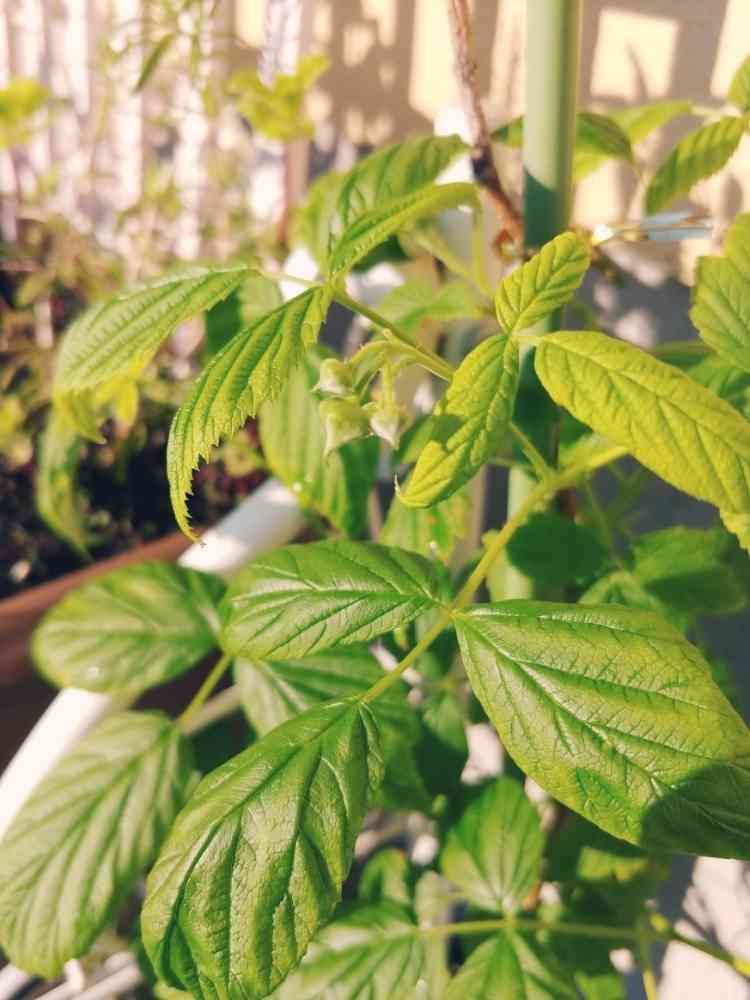 「リサ オレンジ ペコ」と言う名前のラズベリーに蕾が着きました🎵