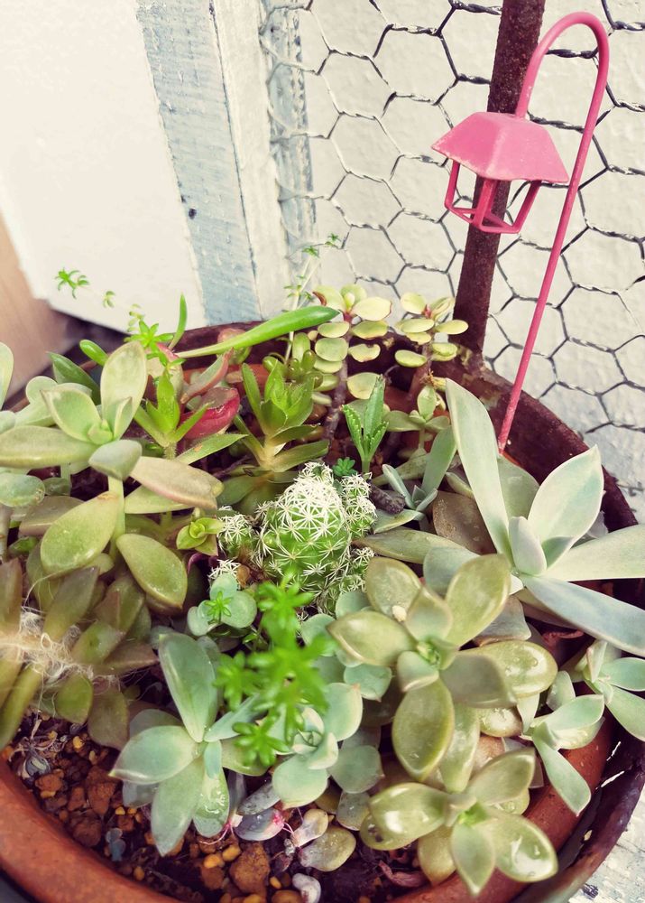 室内から玄関先に移動した寄植え🙃昨夜は雨でしたが元気そう🌵