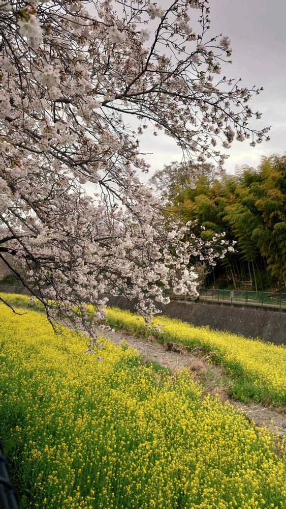 桜と菜の花その内に蝶々も飛んできますね🌸🟡🐝🦋