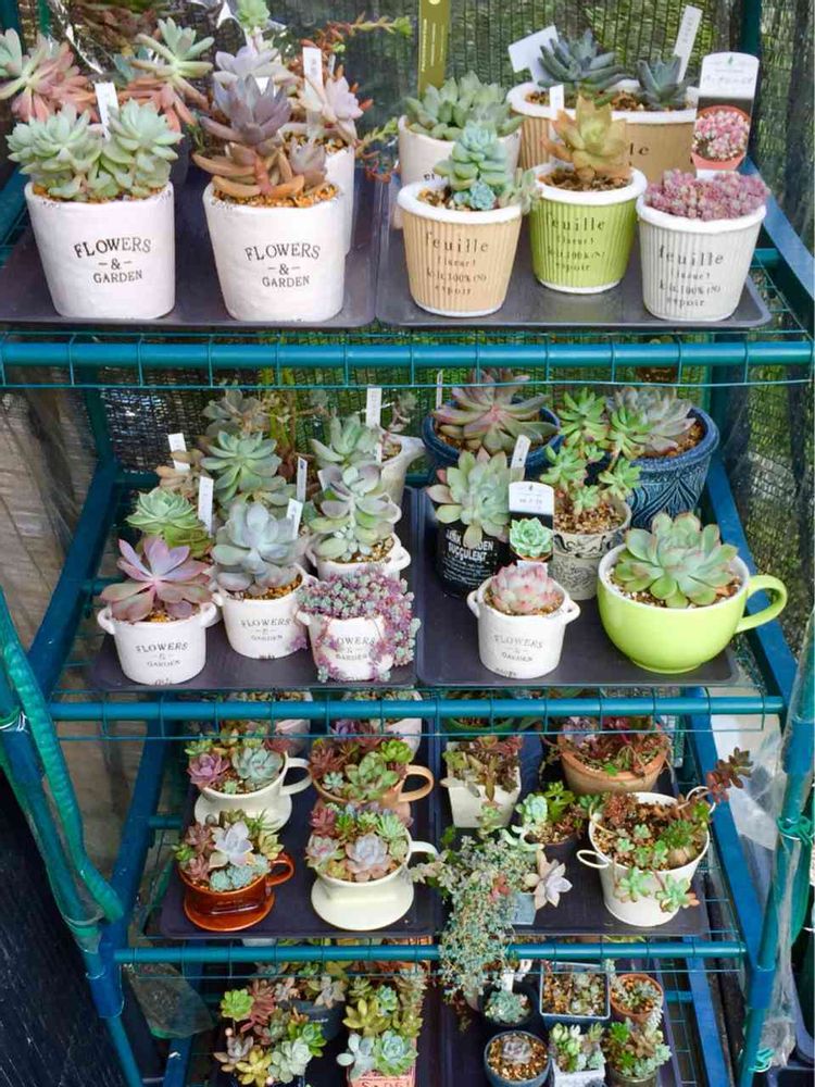 昨日の多肉棚の様子の上の方のアップです✨