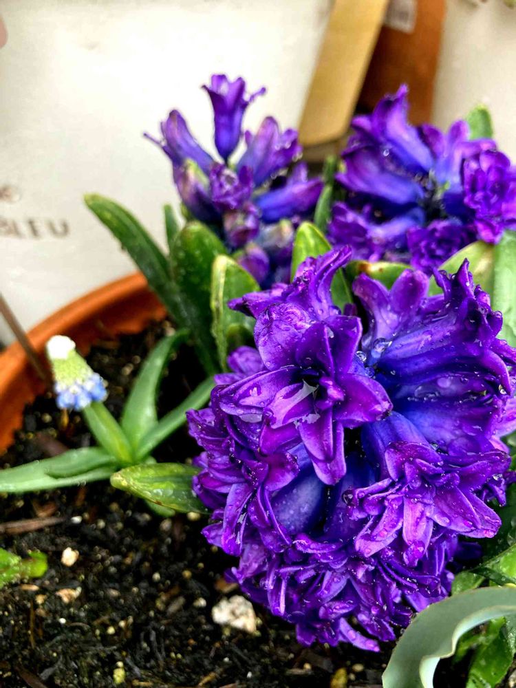 💙今朝の玄関のヒアシンスとムスカリ💕